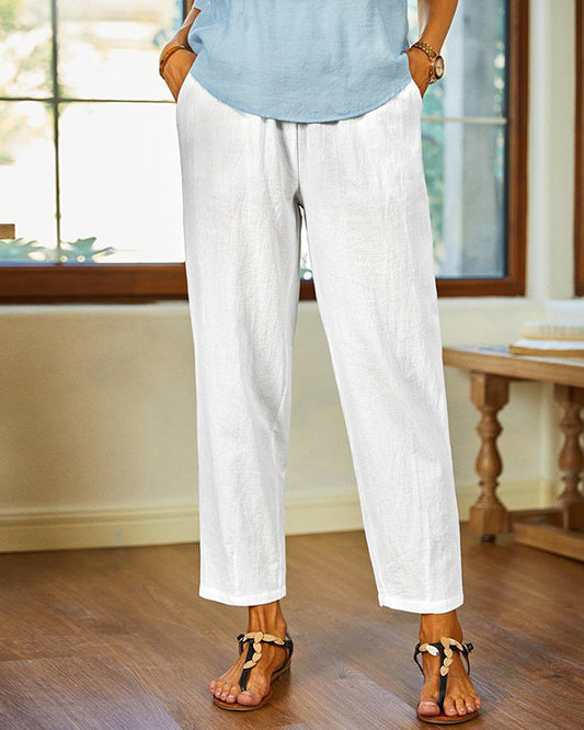 Women's Casual Solid Color Cotton Wide-Leg Pants